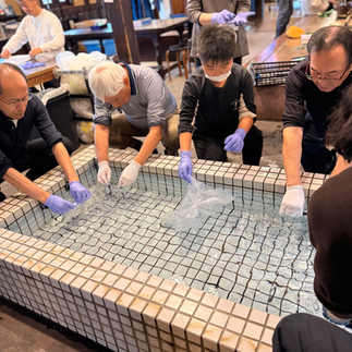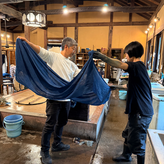 今回のバスツアーでは、青梅の「壺染苑」で藍染体験を行い、その後「ままごとや」で美味しい食事をいただきました。
